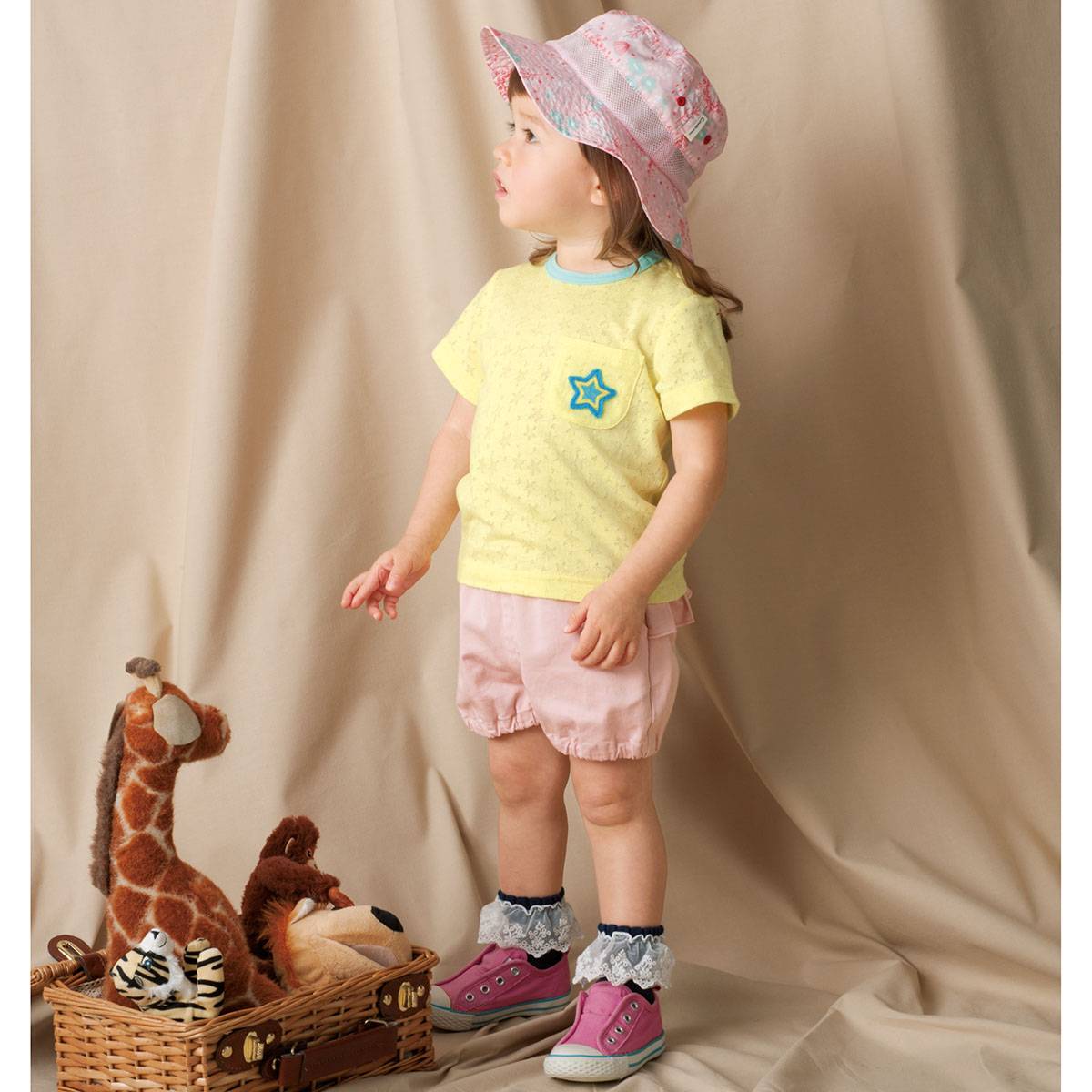 女の子に大人気のかぼちゃシルエットで、フリルをあしらったバックスタイルはかわいさ満載! 素材綿95%・ポリウレタン5%(ツイル) カラー展開ダークピンク、グレーグリーン サイズ展開80、90、100、110、120、130 ⇒ギフトラッピングをご希望の方